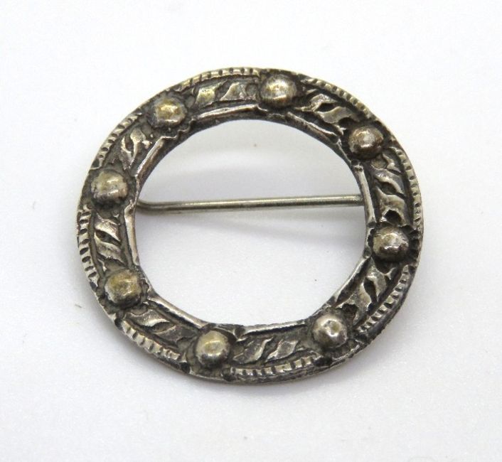 A silver Celtic style wreath brooch hallmarked for Chester.