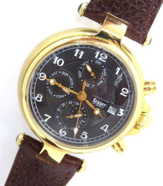 A Mens Stauer wristwatch on buffalo calf strap, in presentation box (box a/f).
