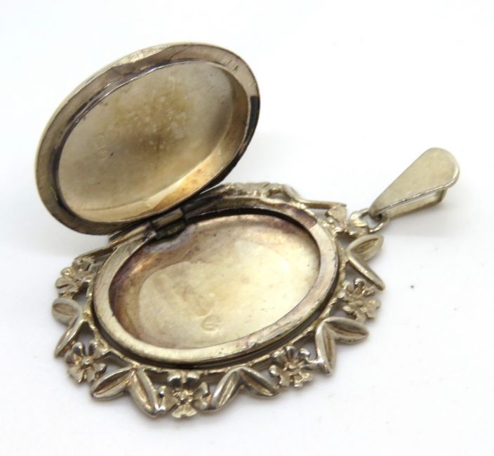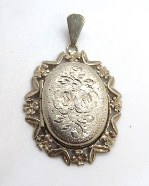 A hallmarked silver locket in extended floral mount, approx 4cm inc bale.