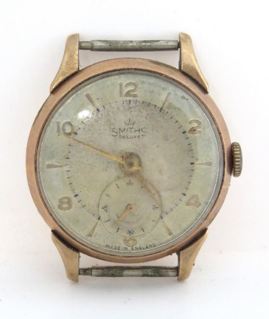 A Smiths 9ct gold mens wristwatch, hallmarked 375, case back weighing 6.7g inc strap links,