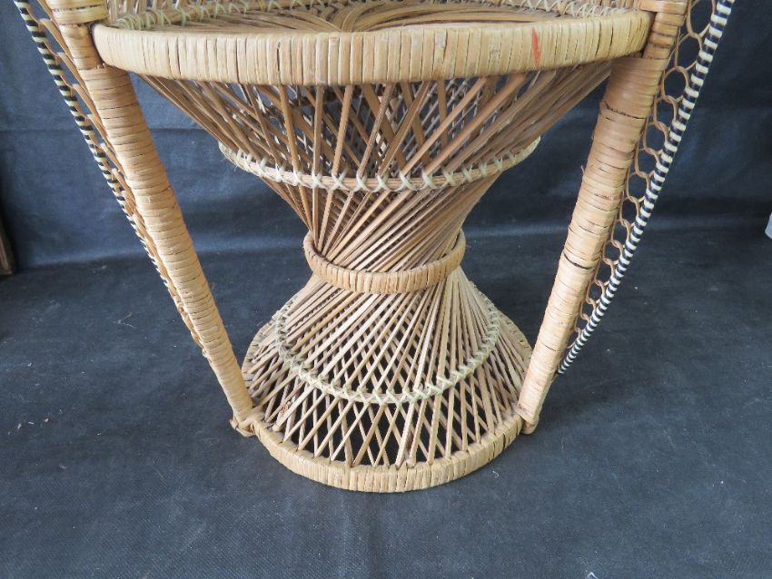A small sized wicker or cane Peacock chair, for teddy or doll display.