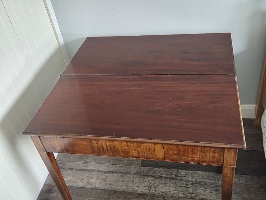 A pair of mahogany fold over games tables, each measuring 89 x 91 extended, by 75cm high. Sold in absentia - collection is from Upper Boddington, Northamptonshire.