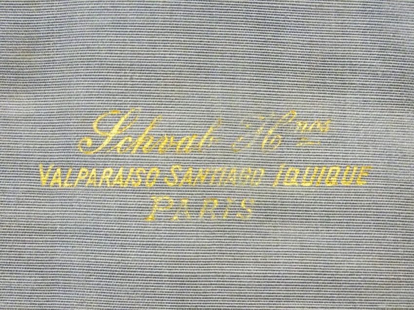A Chilean silver cased set comprising a strainer / sifter, server, nutcrackers, and knife, in the German Art Nouveau style. The fitted case mark Schrab Hermanos Valparaiso, Santiago, Iquique, Paris. Case approx. 10 1/2" wide
