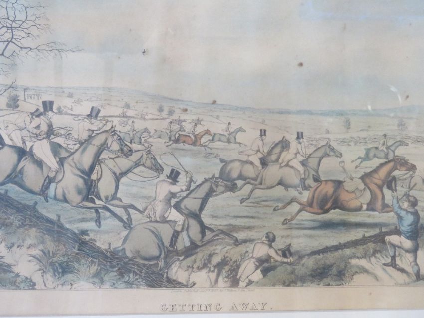 After Henry Alken (1785-1851) four framed colour engravings depicting hunting scenes, sight size 50 x 34cm, each in matching ebonised frame measuring 67.5 x 50cm.