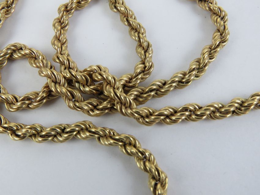 A 9ct gold rope link chain necklace measuring 60cm in length, stamped 9k, 14.9g.