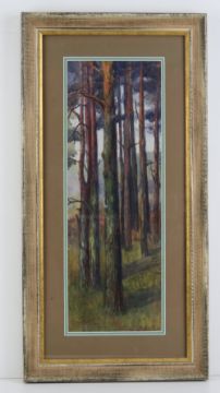 Gordon L Grimwade, 20th century watercolour, tall Spruce pine trees in the Pre-Raphalite manner. Signed lower left. 17 3/4 x 6 1/4"(45 x 15.8cm).