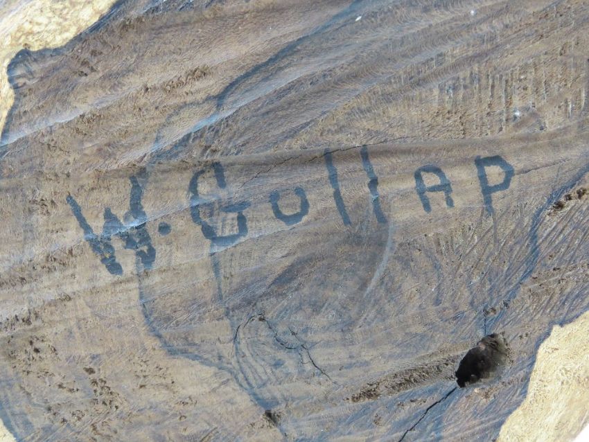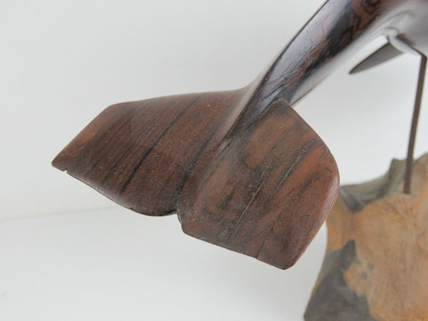 W. Gullap early 20th century; a solid rosewood sculpture of a leaping Dolphin with glass eyes, mounted on base, signed under, 15 1/4" (38.7cm) high, 26 1/2" (67.3cm) in length.