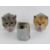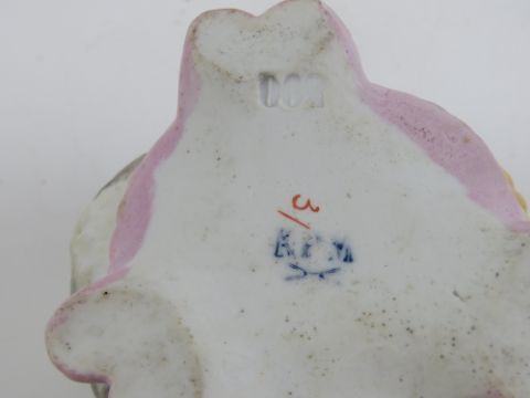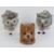 Three continental soft paste porcelain garden Fairy Lights (2+1) 2 formed as three sided , owl , kitten and puppy open top glass eyed table light holders and the single formed as a Yorkshire Terrier puppy with glass eyes , the tallest 3 3/4” ( 9.5 cm).