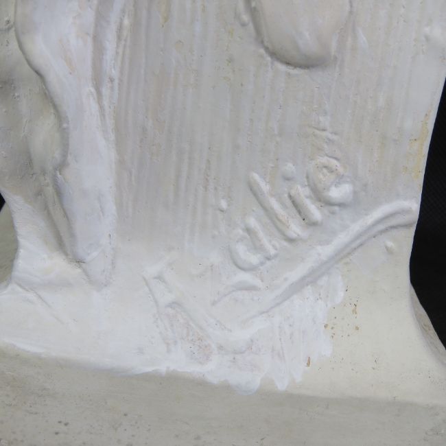 Austrian Art Nouveau: a pair of female figure busts made by Josef Strnact in the manner of Alphonse Mucha. Entitled 'Stiefmütterchen' (Pansy) and 'Azalie' (Azalea). Each standing 18 1/2" (47cm) high and bearing makers mark under together with the numbers '3736' & '3735' under. Now plaster / terracotta painted white.Footnote: Alphonse Mucha was awarded the Imperial Austrian Order of Franz Joseph ( awarded for civil and military merit ) and from the age of 43 he returned to his homeland of Bohemia- Moravia region in Austria. Charles Rennie MacIntosh (taking influence from Austrian Art Nouveau) is known to have used Stiefmutterchen in many of his designs.
