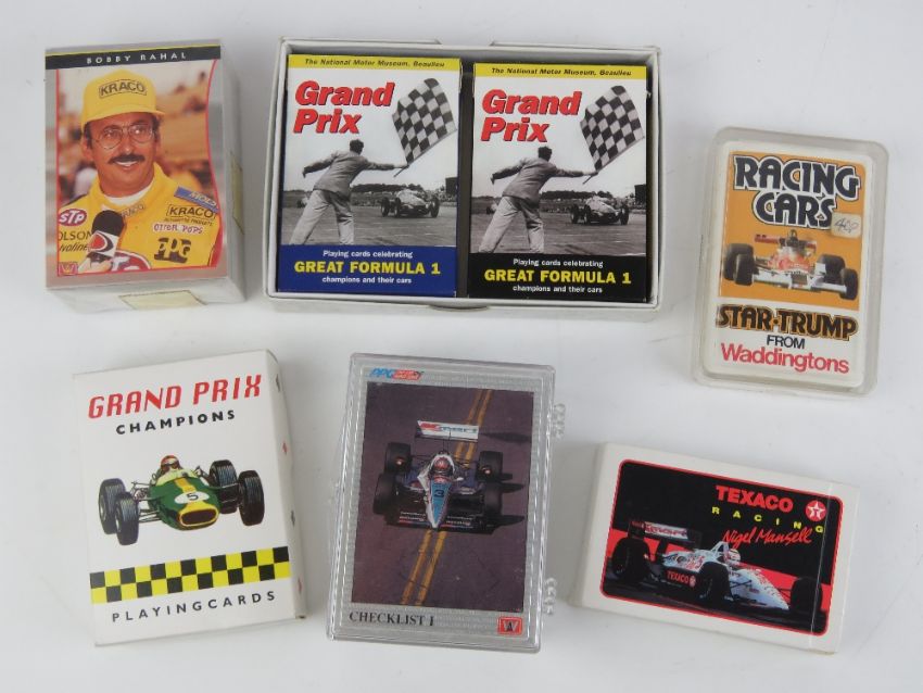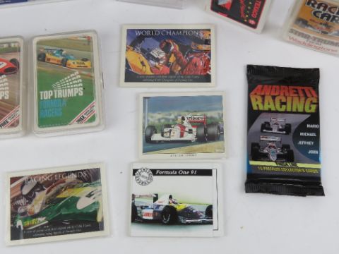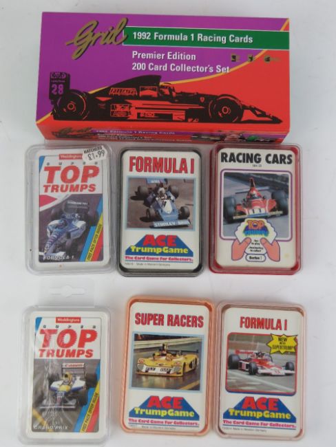 1992 F1 Racing cards '200 Card Collectors Set', together with various other racing and car themed cards including Top Trumps.
