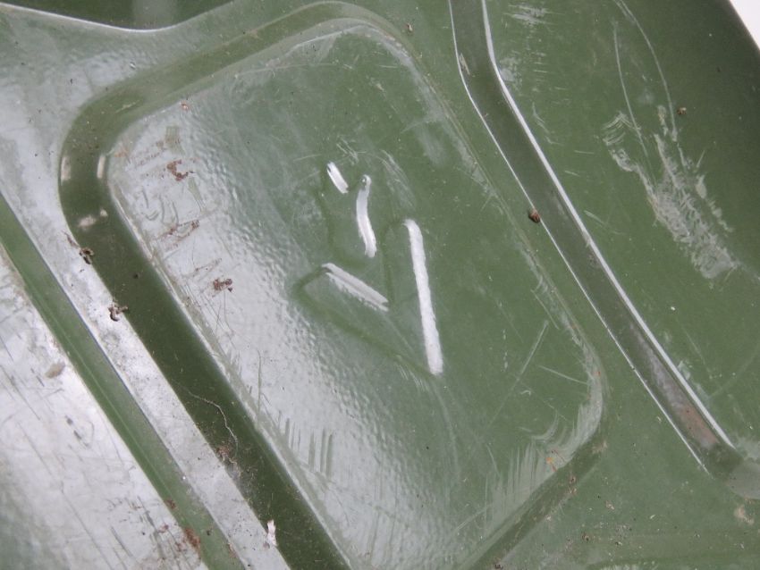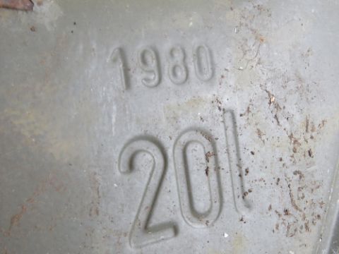 Three 20L 'Jerry' petrol cans, dated 1980 and 1988 respectively, one undated.