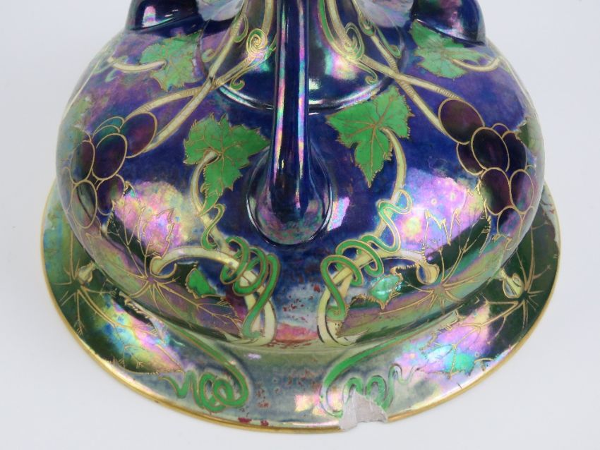 An Art Nouveau Walter Slater for Shelley lustre glazed bowl on three foot base. Decorated with an Art Nouveau fruiting vine design. Signed Walter Slater to base. Approx. 7 1/4'' high.