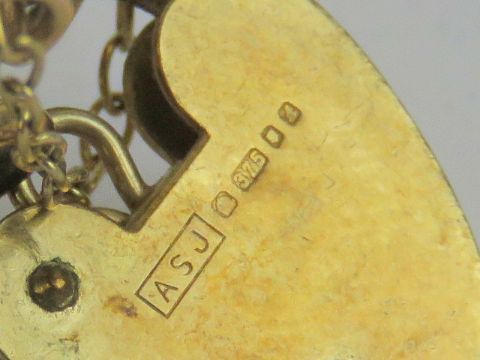 A 9ct gold geometric five bar bracelet with heart padlock clasp, hallmarked 375, 21g.