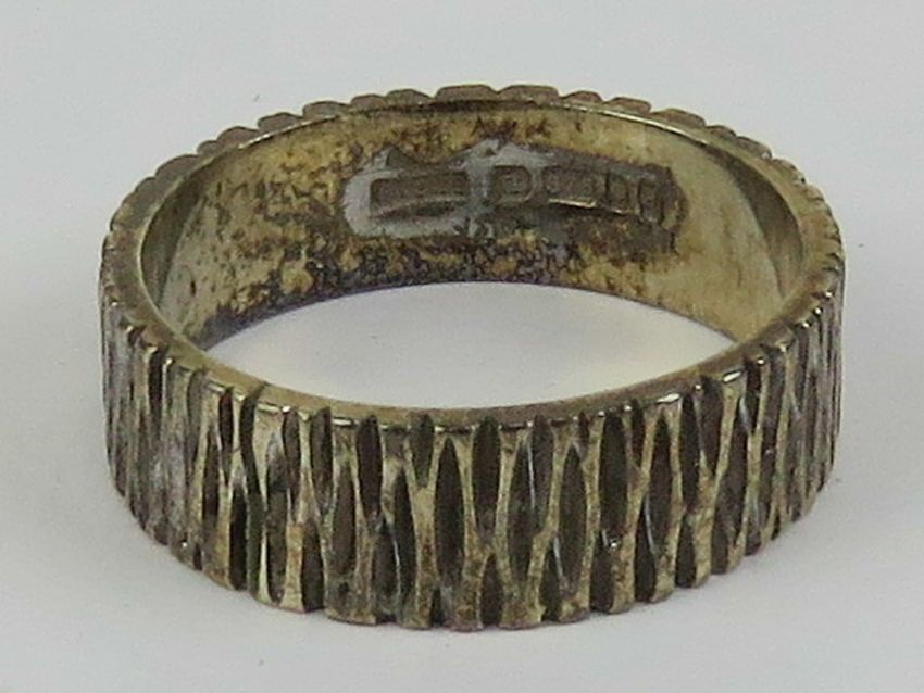 A 9ct gold ring having bark effect and hallmarked London, size M, 3.9g.