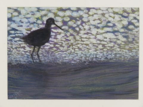 Brooke Griolle, 20th century Cornwall, pastel, a Curlew on the River Fowey, signed lower left and bears label verso, aperture 8 x 11 1/3" ( 20.3 x 28.7cm).