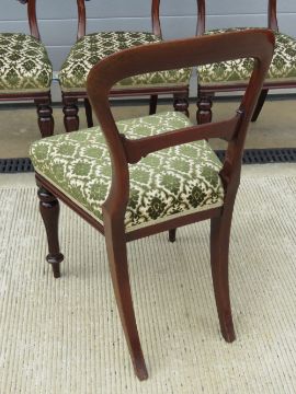 A good set of Victorian mahogany dining chairs having shaped and carved splats all raised over reeded and shaped legs.