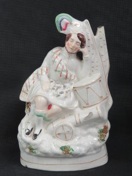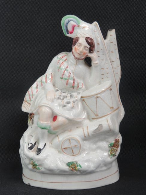 Staffordshire flatbacks; three assorted figurines ranging in size 26 - 35cm, a/f.