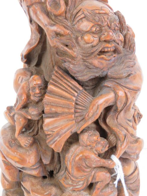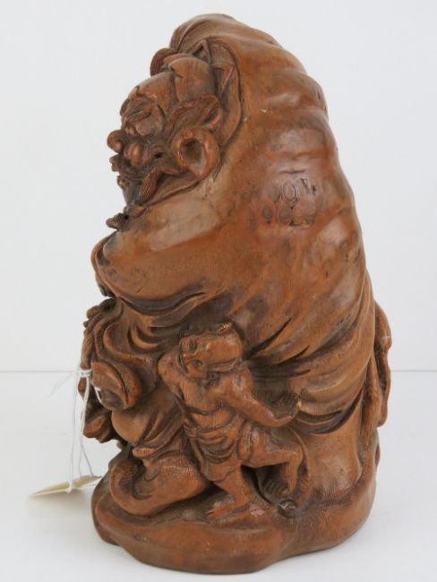 A carved bamboo figure of Zhong Kui mythical vanquisher of ghosts and devils, standing 25cm high.