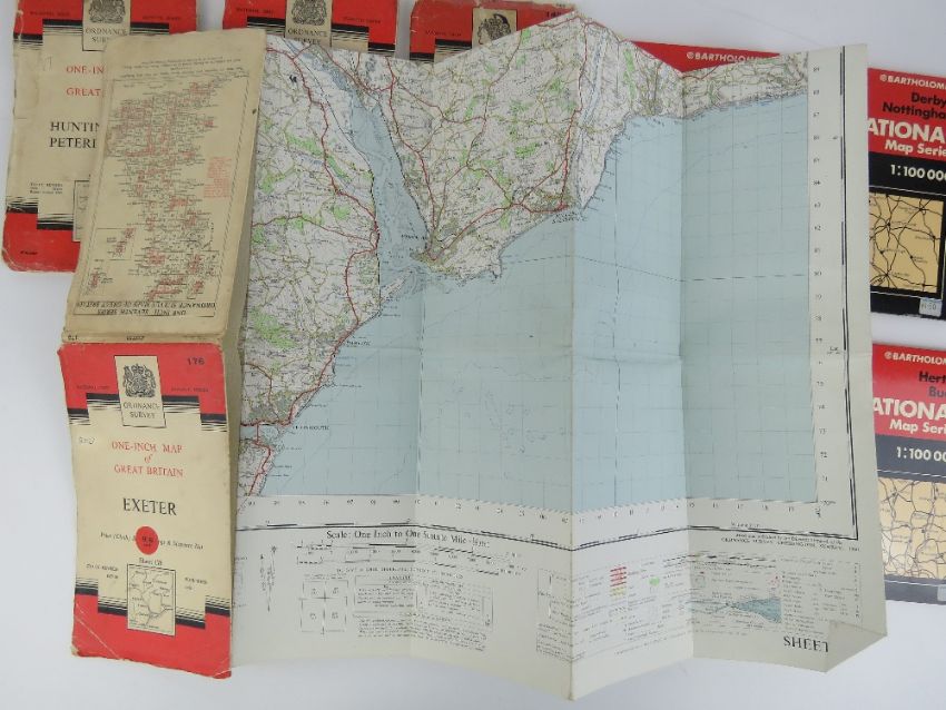 A quantity of vintage Bartholomew maps being; No14 Oxford 1981, No15 Hert & Bucks 1979, No19 Birmingham & Northampton 1979, and No24 Derby & Nottingham 1980. Also six Ordnance Survey maps c1950-60s