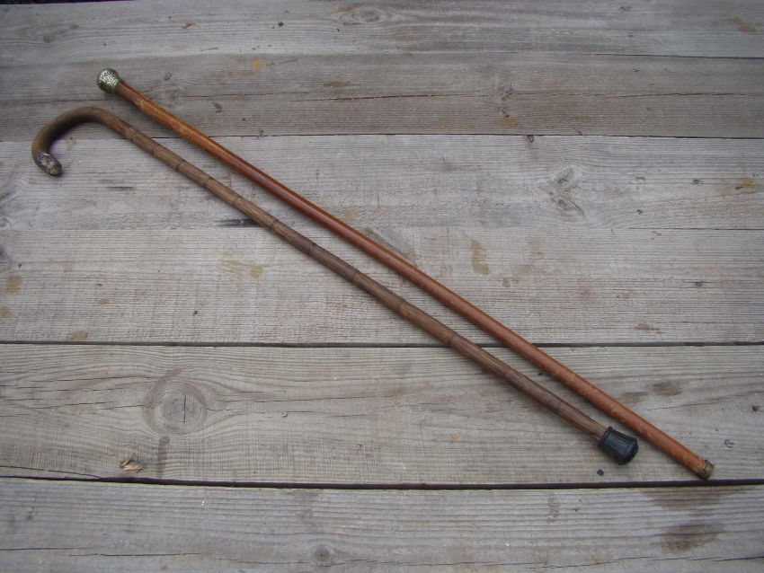 Two walking canes with white metal tops, no apparent hallmarks.
