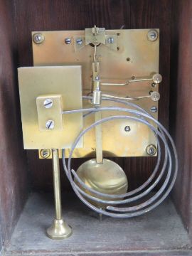 Gothic Revival Ting Tang clock: a gilt and carved wooden cased 'W & H' (Winterhalder and Hofmeier) eight day movement striking on two coiled gongs, the silvered 4 1/2" (11.5cm) dial signed ' CH OSMOND St. Aldates (Oxford)', 8 3/4" (22.2cm) wide x 12 3/4" (32.4cm) high.