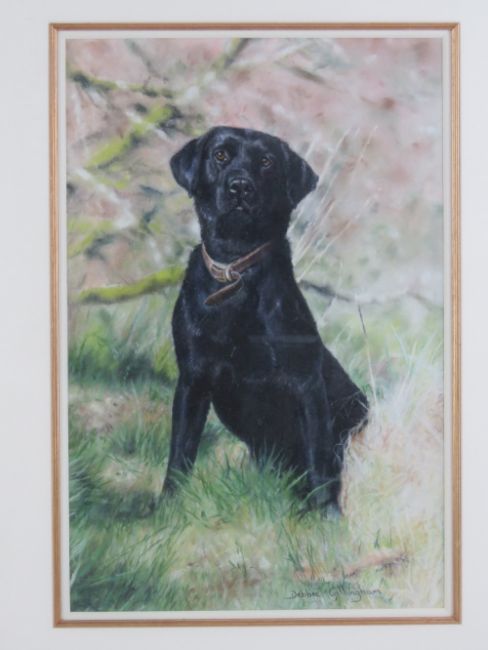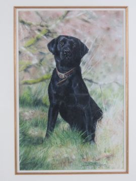 Debbie Gillingham (1965) pastel of a seated black Labrador gun dog in a field, signed lower right 15 x 9 3/4" (38.1 x 24.7cm).