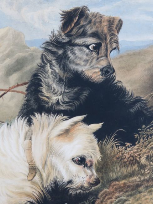 RMW 1865, a large hand coloured aquatint after George Armfield, Rabbiting on dunes with Terrier dogs, 20 x 26" (50.8 x 66cm).