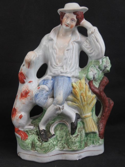Staffordshire flatbacks; three assorted figurines ranging in size 26 - 35cm, a/f.
