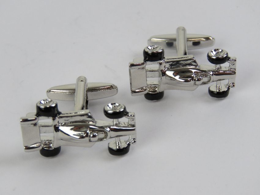 A pair of 'as new' cufflinks in the form of F! racing cars, in presentation box.