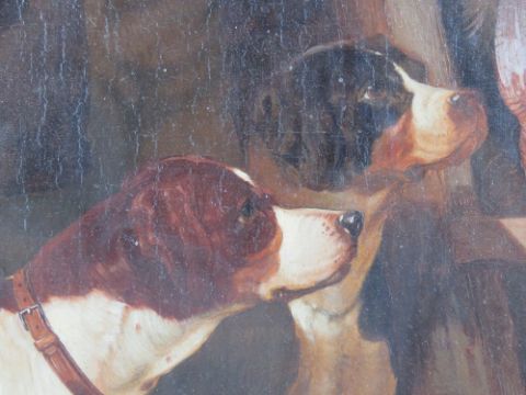 Follower of Richard Ansell (1815-1885), 19th century oil on canvas, The English Gamekeeper, a gamekeeper leans on fence with game and holding a pair of Pointer gun dogs, 26 x 20" (66 x 50.7cm). In a moulded Birds-eye Maple frame, glazed.