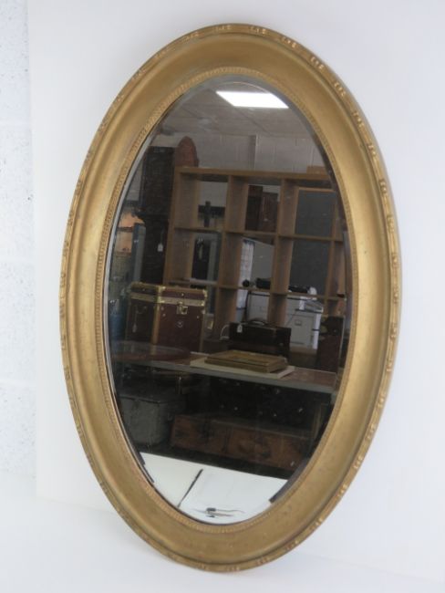 A gilt framed bevelled edge oval wall mirror, 80 x 52cm.