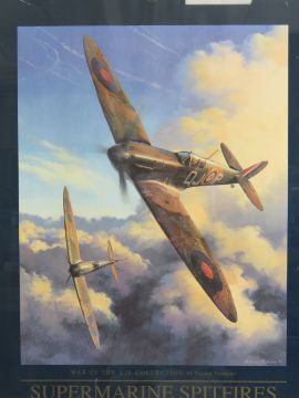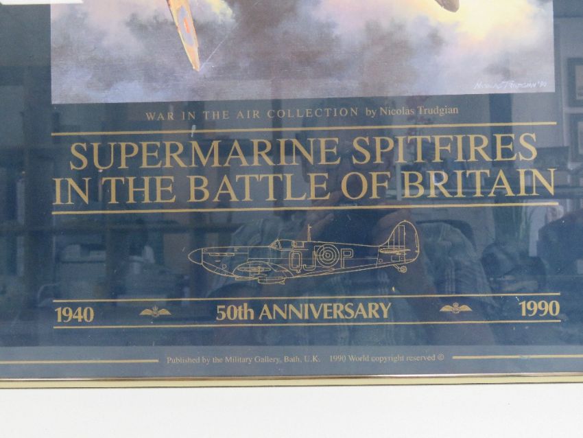 Print; Supermarine Spitfires in the Battle of Britain, in frame, 1940-1990 50th anniversary.