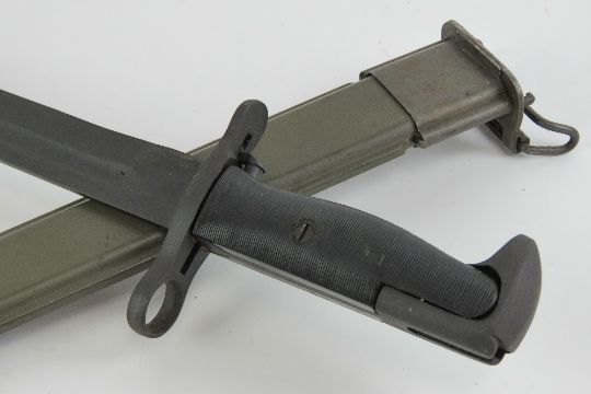 A WWII US Springfield bayonet having full length blade marked 1942, with scabbard.