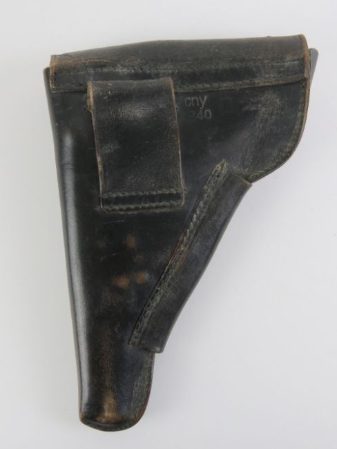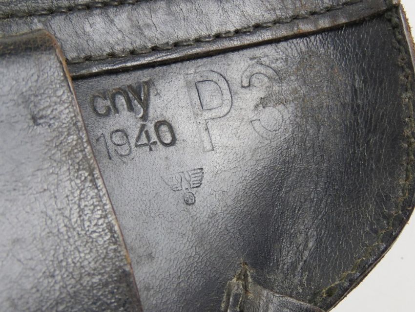 A WWII German P38 holster with spare magazine, having German marks upon and dated 1940.