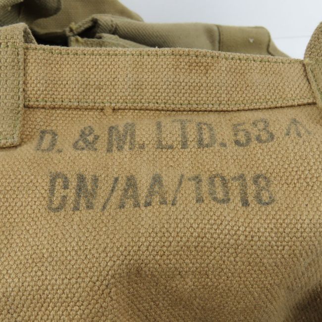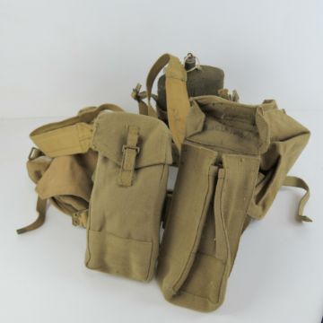 A WWII British 36 pattern webbing set with Bren magazine pouches, water bottle and utility pouches.