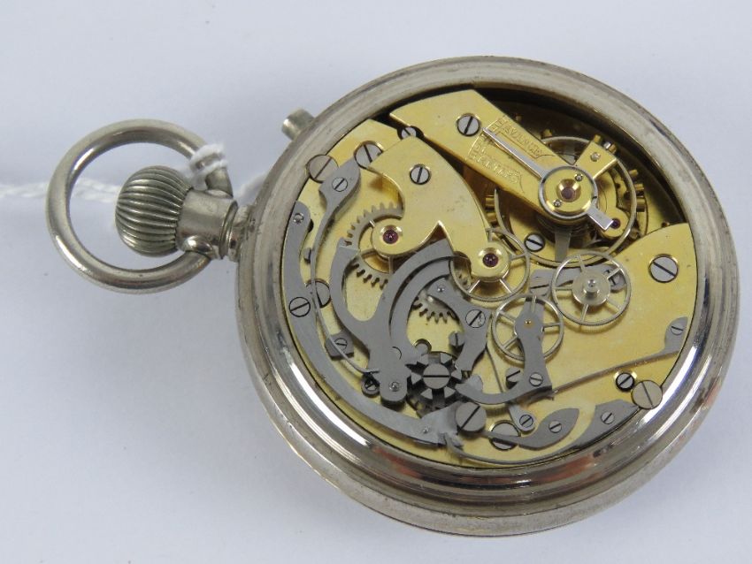 A WWII Royal Navy 4th pattern split second stop watch, Swiss made probably Lemania, Rattrapante movement, screw front and back.