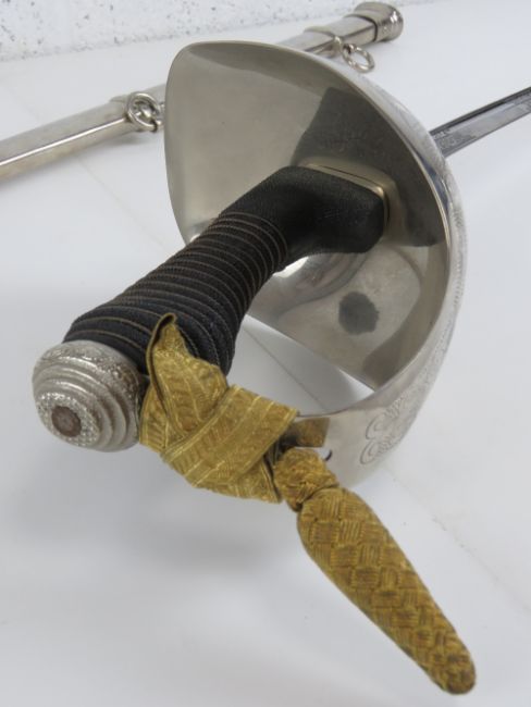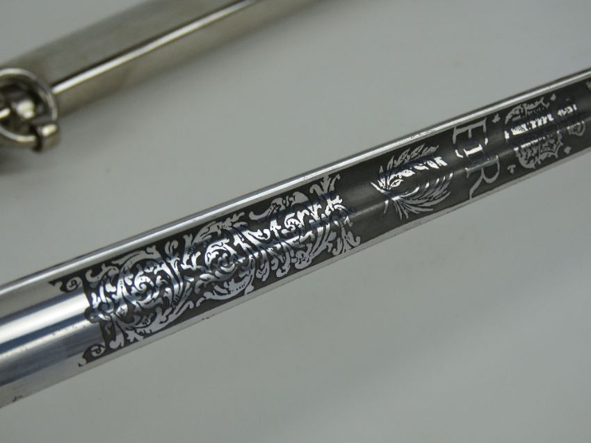 A British Army ceremonial sword having ER cypher to 89cm blade, made by Wilkinson.