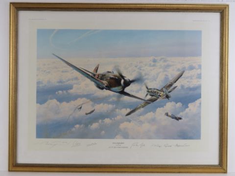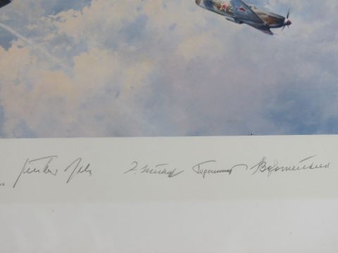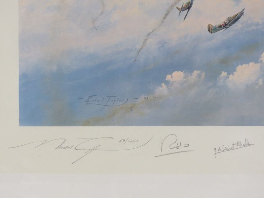 Print; Russian Roulette by Robert Taylor, Yak 3s and Me109s fly head on, No 49/1250, dated 1992 and signed.