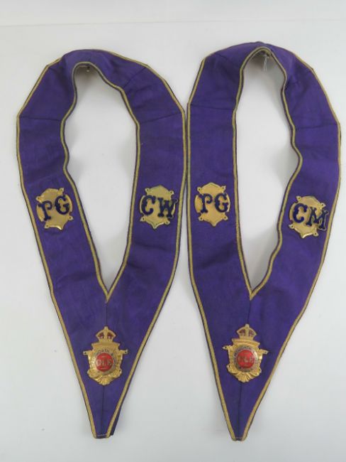 The Royal Antediluvian Order of Buffaloes (RAOB); two collars being P.G.C.W and P.G.C.M for Hemsworth & District, made by F.C. Parry Birmingham.