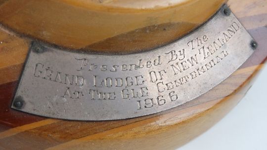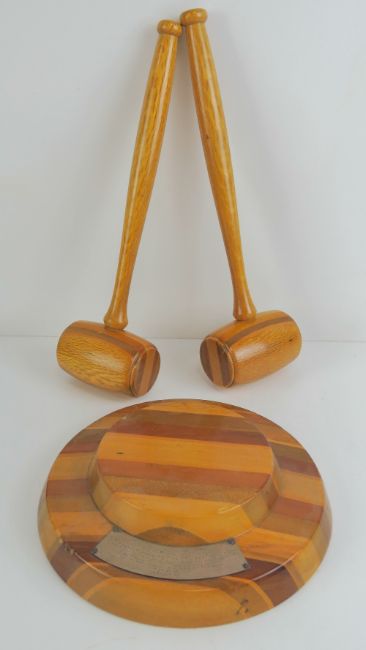 The Royal Antediluvian Order of Buffaloes (RAOB); two gavels with block presented by the Grand Lodge of New Zealand at the GLE Centennial 1966. Three items. Provenance: From the collection of a member of various lodges since 1980s.