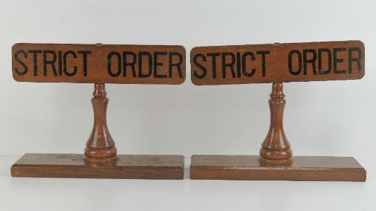 The Royal Antediluvian Order of Buffaloes (RAOB); a pair of 'Strict Order' 'Liberty Hall' rotating signs from an RAOB lodge. Provenance: From the collection of a member of various lodges since 1980s.