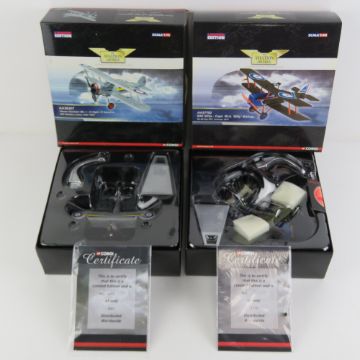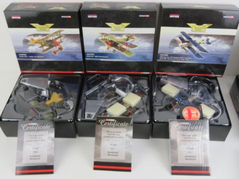 Six Corgi The Aviation Archive 1:48 scale model aircraft; AA37804 Albatross DV - Uffz Paul Baeumer, AA37802 Albatross DV - LTN Freidrich Ritter Von Roth Jasta 23B German Air Force Early 1918, AA37702 RAF SE5a - Capt W.A. 'Billy' Bishop No60 Sqn RFC Summer 1917, AA37903 SPAD XIII - Eddie Rickenbacker, AA38302 Fokker DR1 - Lothar Von Richtofen, and AA38102 Sopwith Camel - W.G. Barker. Together with a Corgi Aviation Archive 1:72 scale model AA36207 Gloster Gladiator MkI 'A' Flight 73 Squadron RAF Debden Essex Sept 1937. Seven items, all in original boxes.
