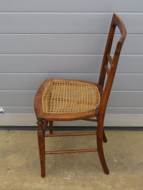 An Edwardian cane seated bedroom chair, together with an Edwardian mahogany planter table. Two items.
