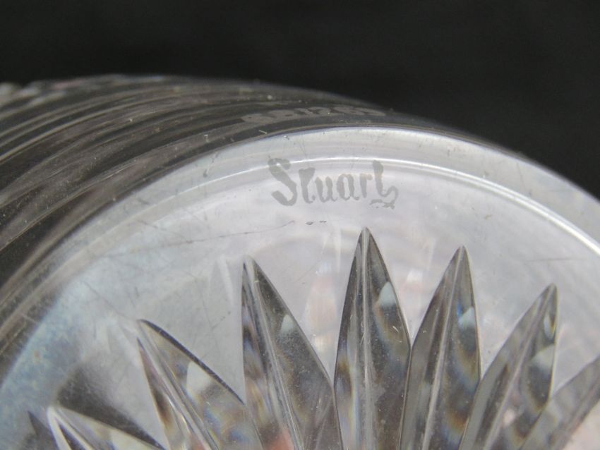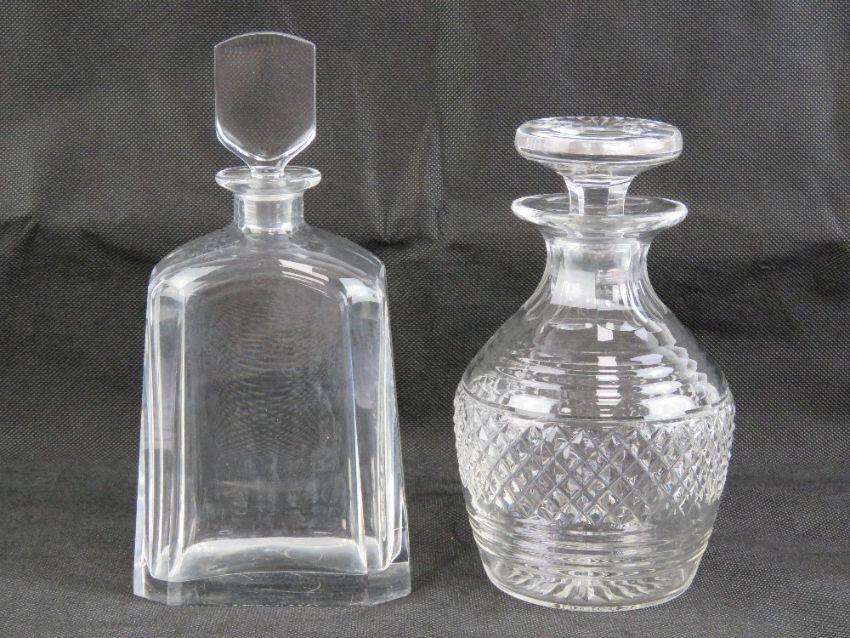 A cut glass decanter by Stuart Crystal, marked Rd681269 Stuart upon, standing 21cm high. Together with an Art Deco style decanter with indistinct signature to base. Two items.