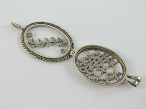 A HM silver 'open locket' having pierced floral panels to front and back, opening at bale, 4.7cm in length.