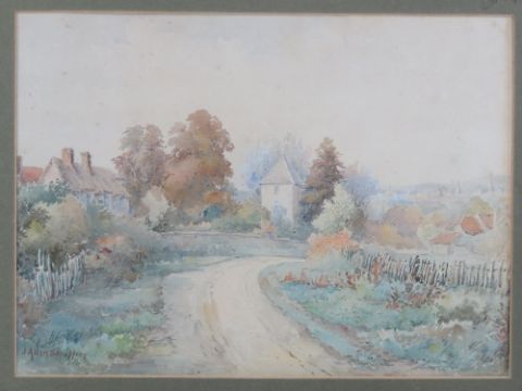 James Allen Shuffrey (1859-1939), watercolour, an unknown Cotswold village, signed lower left, measuring 9 3/4 x 13 1/4 (24.8 x 35cm).