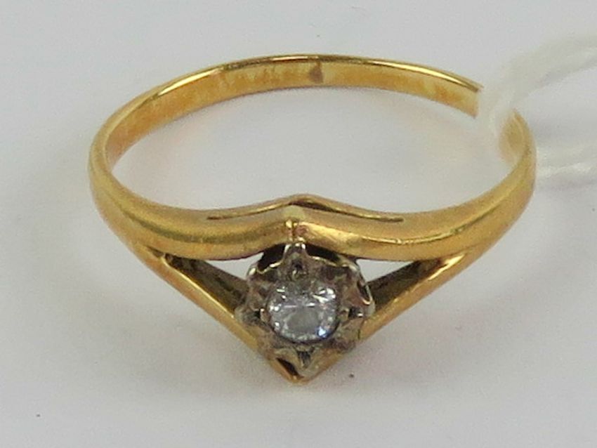 An 18ct gold diamond solitaire ring approx 0.1ct, stamped 18ct, size M, 2.5g.