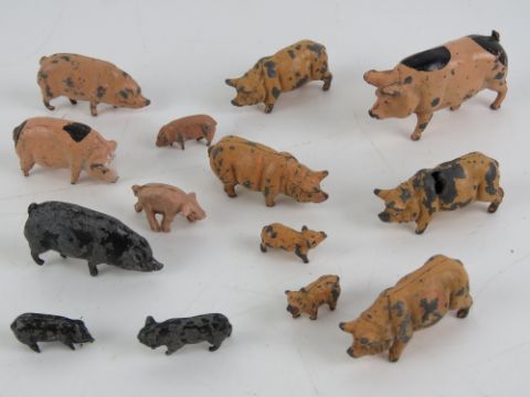 A quantity of assorted Britains hand painted lead pigs and piglets, fourteen in total.