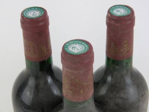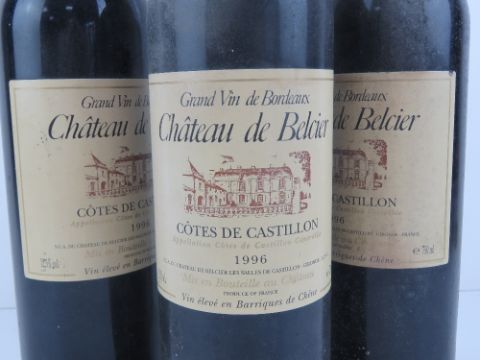 Wine; three bottles of cheateau beltier cote de castillion 1996.