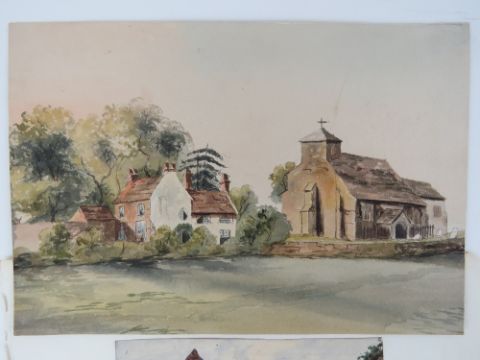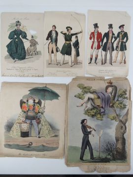 A collection of assorted watercolours, coloured steel engravings, decoupage, sketches, etc.